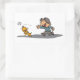 Pegatina Rectangular Personalizado divertido niño y perro jugando a la