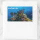 pegatina rectangular de Guay que presenta el coral colorido, abundantes escuelas de peces tropicales y agua azul cristalina que se encuentran en el patrimonio mundial de Australia listado como Gran Barrera de Coral.