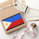 フィリピン共和国の国旗。 白は平等と友愛を、青は平和、真実と正義を、赤は勇気と愛国心を象徴し、黄色い太陽は自由を意味している。