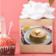 Este es un diseño generado por IA. Quería que fuera una pila de crepes con una parte de mantequilla en la parte superior y cubierta de jarabe, el plato que quería era sobre un mantel de cuadros rojos. El vaso de jugo de naranja acaba de aparecer.
