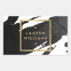Pinceladas de pintura negra y tinta crean un fondo abstracto en este diseño de pegatina personalizada. Su nombre o el nombre de su empresa se muestra en una caja de oro falso para una estética moderna. Estas pegatinas son ideales para sellar sobres o paquetes, personalice el texto para decir 'gracias' para los favores de los invitados a la fiesta, utilícelas para etiquetas de productos o velas, o para personalizar sus suministros de oficina o escuela. Arte y diseño © 1201AM Design Studio | www.1201am.com