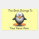 Pegatina Rectangular Pingüino lindo en placa con nombre de libro amaril