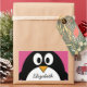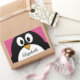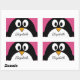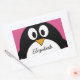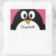 Pegatina Rectangular pingüino personalizado lindo con fondo rosa
