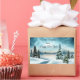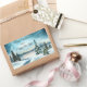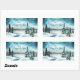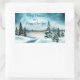 Pegatina Rectangular Pinos nevados cerca de un lago