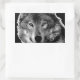 Pegatina Rectangular Pintura de Lobo Blanco y Negro