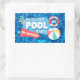 Pegatina Rectangular Piscina de verano Fiesta Tropical Cumpleaños Azul