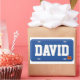 Cree a los pegatinas personalizados para los niños que aman los coches con éstos fáciles modificar a los pegatinas para requisitos particulares. Características del este diseño una placa azul con las letras blancas y un pequeño pegatina anaranjado del registro en la esquina. Utilice el campo de la plantilla para completar su propio nombre.