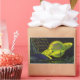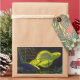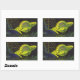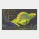 Pegatina Rectangular Planeta Verde Neón con Anillos de Ciencia Ficción