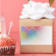 Pegatina rectangular de moda en rosa, rojo y naranja con plantilla en blanco abstracta moderna y colorida.
