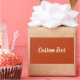 Una secuencia de comandos crema forma el texto para mostrar en el medio de este pegatina naranja quemado. Puede editar el texto como desee.