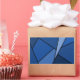 Inspirado por el cristal teñido, este diseño geométrico de diseño elegante contiene polígonos en diferentes tonalidades de azul delineadas en negro. Un triángulo azul claro entra por la parte superior derecha con una matriz de cuadrangulos azules progresivamente más oscuros y otras formas que espiran alrededor de él de luz a oscuridad. Dos formas azules oscuras ocupan el lado izquierdo del diseño original. Imagen creada digitalmente. Copyright © 2014 Claire E. Skinner. Todos Los Derechos Reservados.