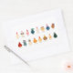 Un grupo de coloridas gallinas y gallos adorables y graciosos parados en fila.