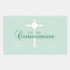 Pegatina Rectangular Primera comunión sagrada, guión en verde suave
