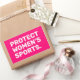 Proteja la tipografía moderna rosada caliente de los deportes de las mujeres Pegatina rectangular. Disponible en diferentes formas y tamaños. Texto blanco sobre color de fondo fucsia rosa caliente. Los colores son editables. Salven los deportes femeninos.
