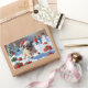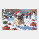 Pegatina Rectangular Pug corriendo en la nieve con sombrero de Navidad