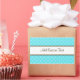 Un azul casi verde azulado con puntos de polka claros. El centro tiene un rectángulo blanco con un contorno marrón oscuro que puede servir como resaltado para el texto personalizado, o si lo prefiere, puede eliminarlo fácilmente.