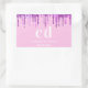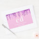 Pegatina Rectangular Purpurina rosado gotea el nombre púrpura