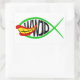 Un diseño de parodia de los Ichthys (Jesús Pescado). El diseño del pez Ichthys, mezclado con el pez Joker de un personalizado de historietas. WWJD en texto negro está dentro de la pesca, preguntando, "¿Qué haría el bromista?"