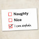 Ridículo o amable - puedo explicarlo. Asegúrate de no estar en la lista de los traviesos de Santa. Nadie puede comportarse bien todo el año. Todo lo que necesitas es una buena excusa.