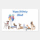 Pegatina Rectangular Razas de perro canino de cumpleaños felices y pers