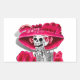 Pegatina Rectangular Ríe mujer esqueleto en Red Bonnet