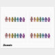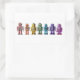Se presenta una fila de siete robots de estilo retro, cada uno pintado en un color distinto que va del rojo al violeta. Los robots cuentan con detalles mecánicos, como diales, botones y antenas, lo que les da un aspecto vintage y lúdico.