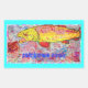 muestra la trucha arcoiris colorida persiguiendo a una mosca con una imagen impresa en pantalla! también con el lema "rainbows rock"