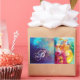 Noche de máscaras venecianas coloridas, extravagantes y vibrantes. Sofisticadas mujeres rubias con máscaras de plumas, dorado brillante, telas de fucsia, trajes barrocos de baile enmascarado con plumas y góndolas. Pintura acuática de colores vivos en rojo, amarillo, naranja, verde azul, rosa, chispas doradas, inspirada en el Carnaval de Venecia y máscaras venecianas. Este diseño fresco y artístico es también un hermoso regalo para Mardi gras (Martes Gordo), El día de San Valentín.