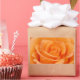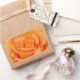 Hermoso rosa naranja con rocío matutino fotografiado en un jardín botánico