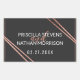 Elegante, moda y moderno negro y rosa impreso en forma de lineal rayado y detalles de contorno con tipografía de oro rosa en un fondo negro, pegatinas para invitaciones de boda. Este diseño clásico y sofisticado es perfecto para una pareja casera moderna y elegante. Personaliza con tu propio nombre y fecha. Todo el diseño de impresión fotográfica.