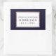 Diseño moderno, sencillo y elegante de imitación impreso en rosa dorado sobre azul marino y blanco, pegatinas para invitaciones de boda. Este diseño clásico y sofisticado es perfecto para una pareja casera moderna y elegante. Personaliza con tu propio nombre y fecha. Todo el diseño de impresión fotográfica.