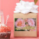 Seis hermosos rosas todos en un solo tallo, estaban floreciendo afuera de la puerta de Shirleypoppy, y ahora florecen para siempre en productos de Zazzle para que disfrutes, una encantadora manera de decir ¡Feliz Aniversario! El Rosa es Elle. El rosa Elle es un reciente ganador de AARS que le añadirá especias a su jardín. Algo de historia... Criada por la empresa francesa Meilland en 1999, lentamente ganó notoriedad en los próximos años con su fragancia y color. Ese mismo año se le concedió el premio AARS. Se considera uno de los tipos románticos. La belleza... Tiene un color muy único. Se le ha llamado de todo, desde naranja hasta rosa... hasta naranja-rosa. Puede deberse a que el amarillo de la flor interior se mezcla con el rosa. En algunos fundas casi puede parecer un color salmón. ¡Me estoy quedando con el naranja-rosado en esto! El aroma también es digno de mención. Algunas personas lo comparan con los viejos rosas de china de esa manera, con un sabor dulce y picante.