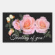 Pegatina Rectangular Rosas rosas rosadas románticas y mariposa