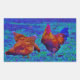 Pegatina Rectangular Rostro y gallinas arcoiris, azul eléctrico