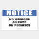 Pegatina Rectangular Rótulo de notificación sin armas permitidas