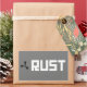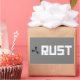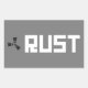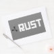 Configuración del cartel RUST: símbolo negro sobre gris, RUST blanco sobre fondo de rectángulo gris.