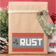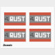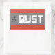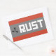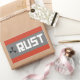Configuración del cartel RUST: símbolo negro sobre gris, RUST blanco sobre fondo de rectángulo gris.