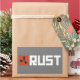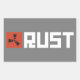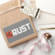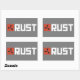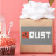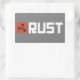Configuración de banner RUST: Negro sobre símbolo rojo, RUST blanco sobre fondo gris.