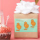 Una postal antigua y vintage de la Pascua feliz con tres chicas de fieltro amarillas borrosas todas seguidas. Fondo verde. ¡Feliz Pascua!