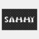 Sammy se escribe en Samoyed Letters - Muchas Samoyeds sonrientes blancas, con aspecto de hacer yoga, mientras se escribe la palabra "Sammy". Derechos reservados © Angi Laframboise. Diversos y graciosos regalos temáticos de Samoyed para los amantes del perro.