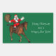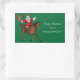 Pegatina Rectangular Santa Claus montando un caballo marrón