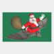 Pegatina Rectangular Santa Claus Sobre El Bate Volador