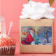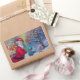 PEGATINA RECTANGULAR SANTA CON NIÑO EN LA NIEVE DE INVIERNO