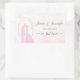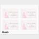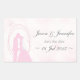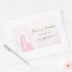 Un hermoso diseño boda romántico conjunto de pegatinas rectangulares mostrando las siluetas enmarcadas de besos de la novia y el novio sobre un fondo rosado de ensueño, con fecha de personalizable, nombres y palabras "salven la fecha" a un lado.