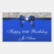 Bonito azul real y plata a cualquier edad pegatinas de cumpleaños con una imagen gráfica plana de las secuencias plateadas y arco azul real con texto blanco.