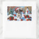 Pegatina Rectangular Setecientos ingleses corriendo en Nieve con Gorra