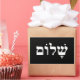 Diseño de texto simple que dice Shalom en hebreo. Fuente blanca sobre fondo negro. Puede cambiar el color de fondo.