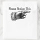 Este pegatina retro contiene el dibujo de una mano con el dedo apuntado. Se muestra a la derecha y dice "por favor noten esto". Se puede usar para indicar peligro o algo importante. El diseño es clásico, hecho a mano (carpintería) y proviene de un libro antiguo. El uso de este artículo transmitirá el aviso que quiera que su cliente o visitante tome, pero con un estilo elegante y vintage. Ideal para la tienda de antigüedades de cualquier zona en la que no se quiera alterar el ambiente atemporal con un signo moderno.