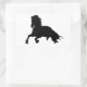 Pegatina Rectangular Silueta blanca de caballo en blanco negro