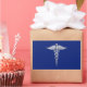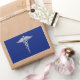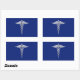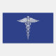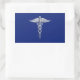 Pegatina Rectangular Símbolo médico cromado estilo Caduceus sobre azul
